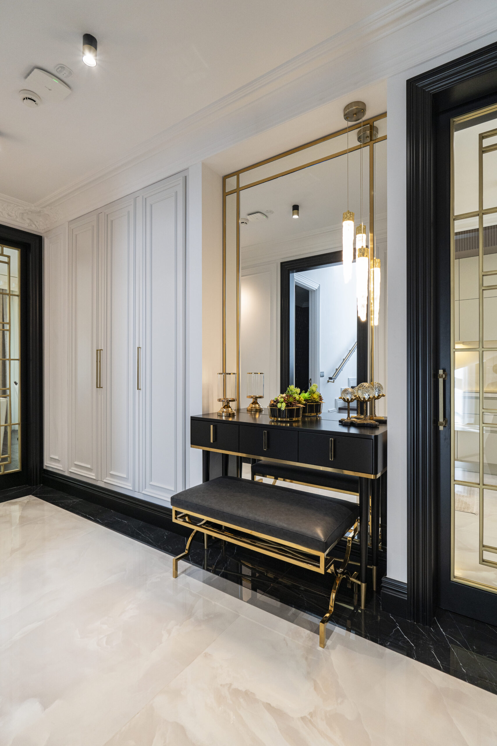 Kingsley House; siyahın gücünü ve beyazın sadeliğini, modern-klasik bir tasarım diliyle ailenizin huzuru için yorumluyor. Kişiye özel plan çözümleriyle şekillenen bu iç mekan projesinde, her detay birbiriyle konuşan bir sanat eseri titizliğinde ele alındı.