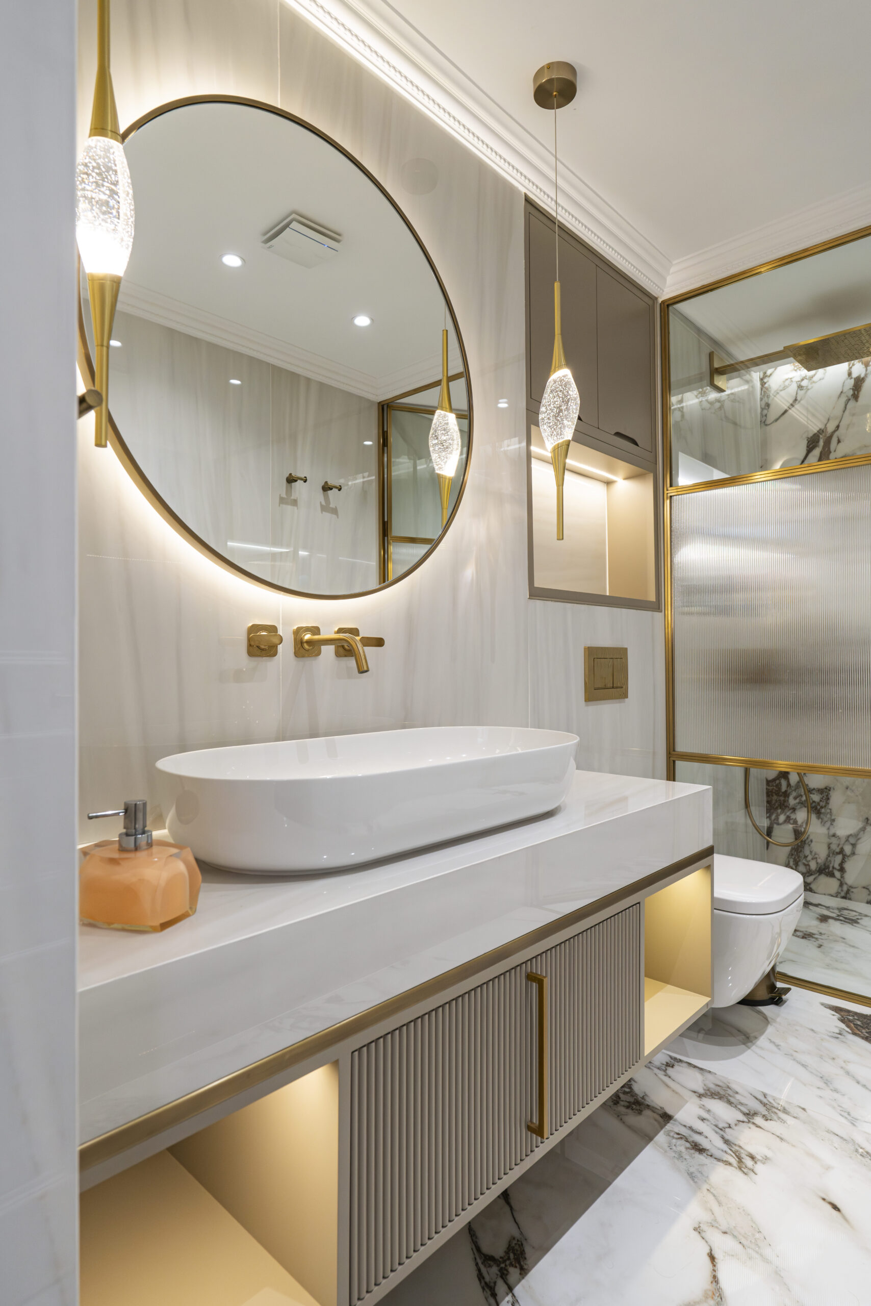 - Aydınlatma: Projeye Özel Tasarım Avizeler
